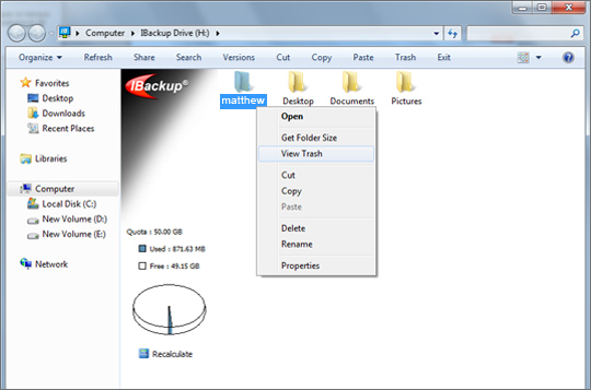 All the files/folders that are deleted from your account will be moved to Trash. You can either move your files/folders to the original location in your IBackup account or restore them to your local computer. The files/folders present in Trash will automatically get deleted after a period of 30 days.