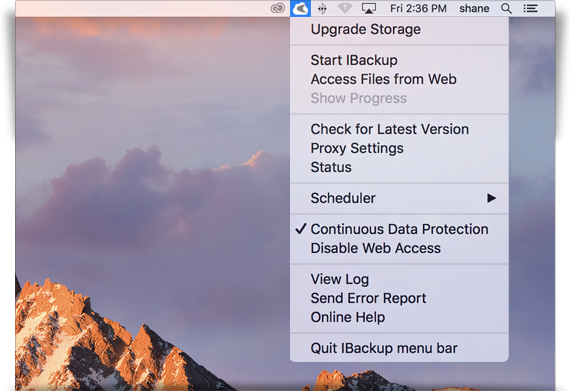 : Manage your backup operations from the IBackup menu bar