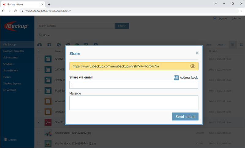 You can collaborate with your associates by sharing your file or folder with them via email, Facebook and Twitter.