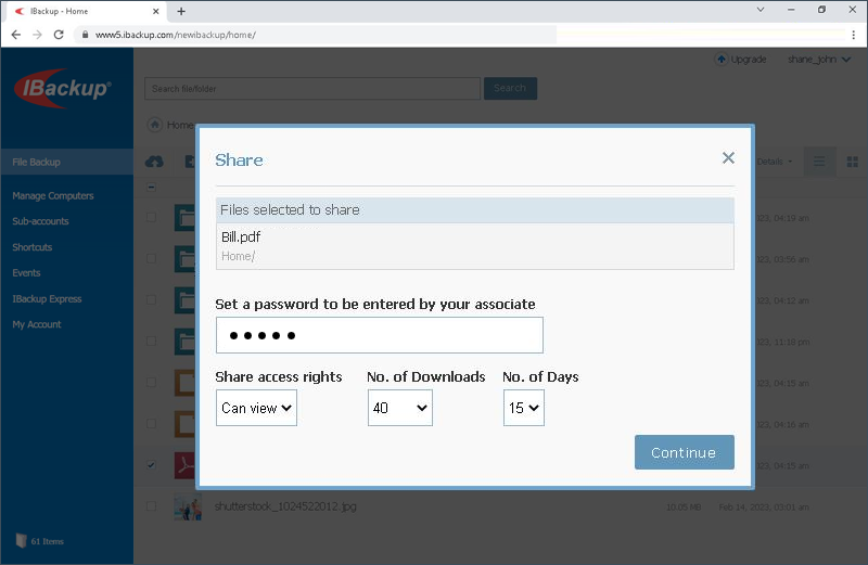 Set a password to be entered by your associate to view or edit the shared files / folders.